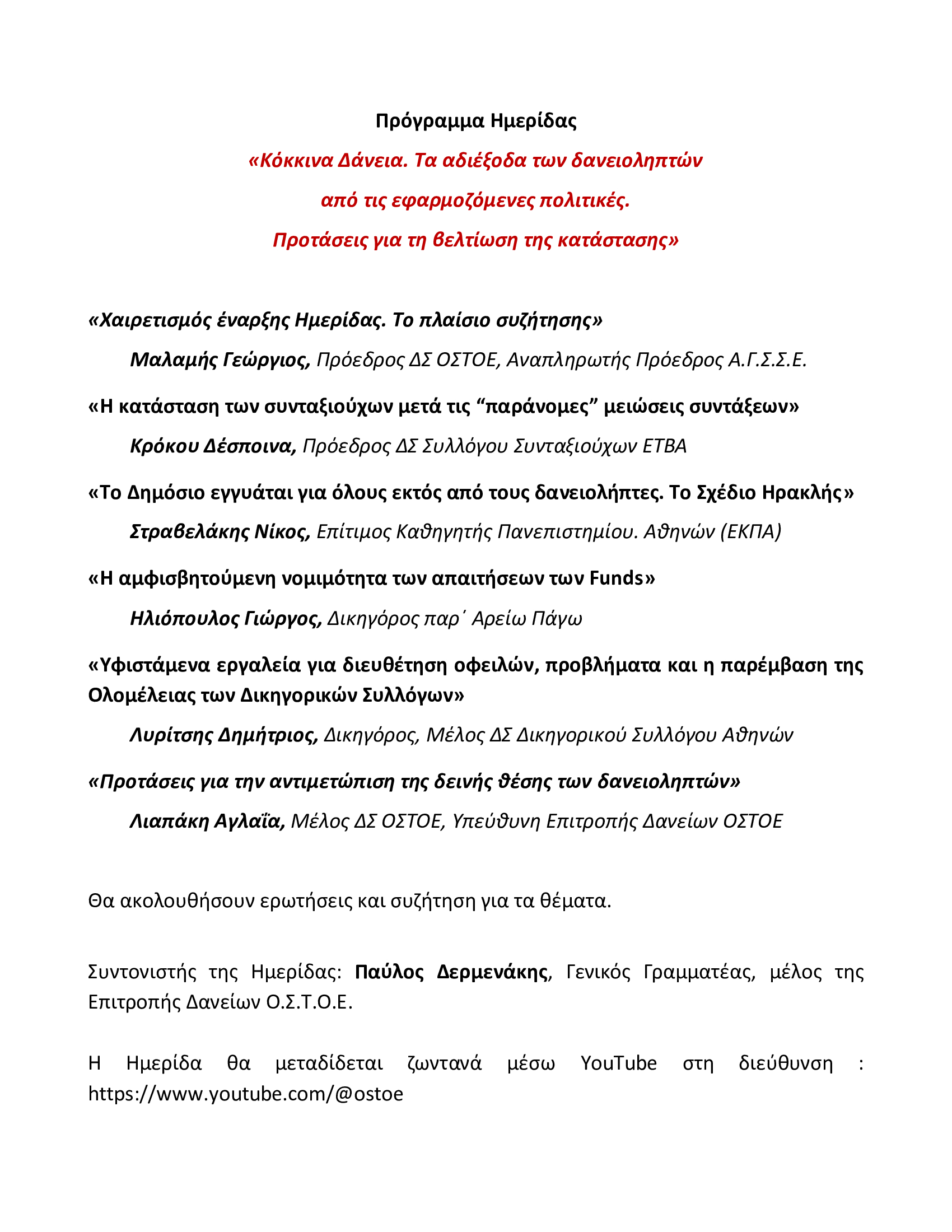 «Κόκκινα Δάνεια. Τα αδιέξοδα των δανειοληπτών από τις εφαρμοζόμενες πολιτικές. Προτάσεις για τη βελτίωση της κατάστασης»